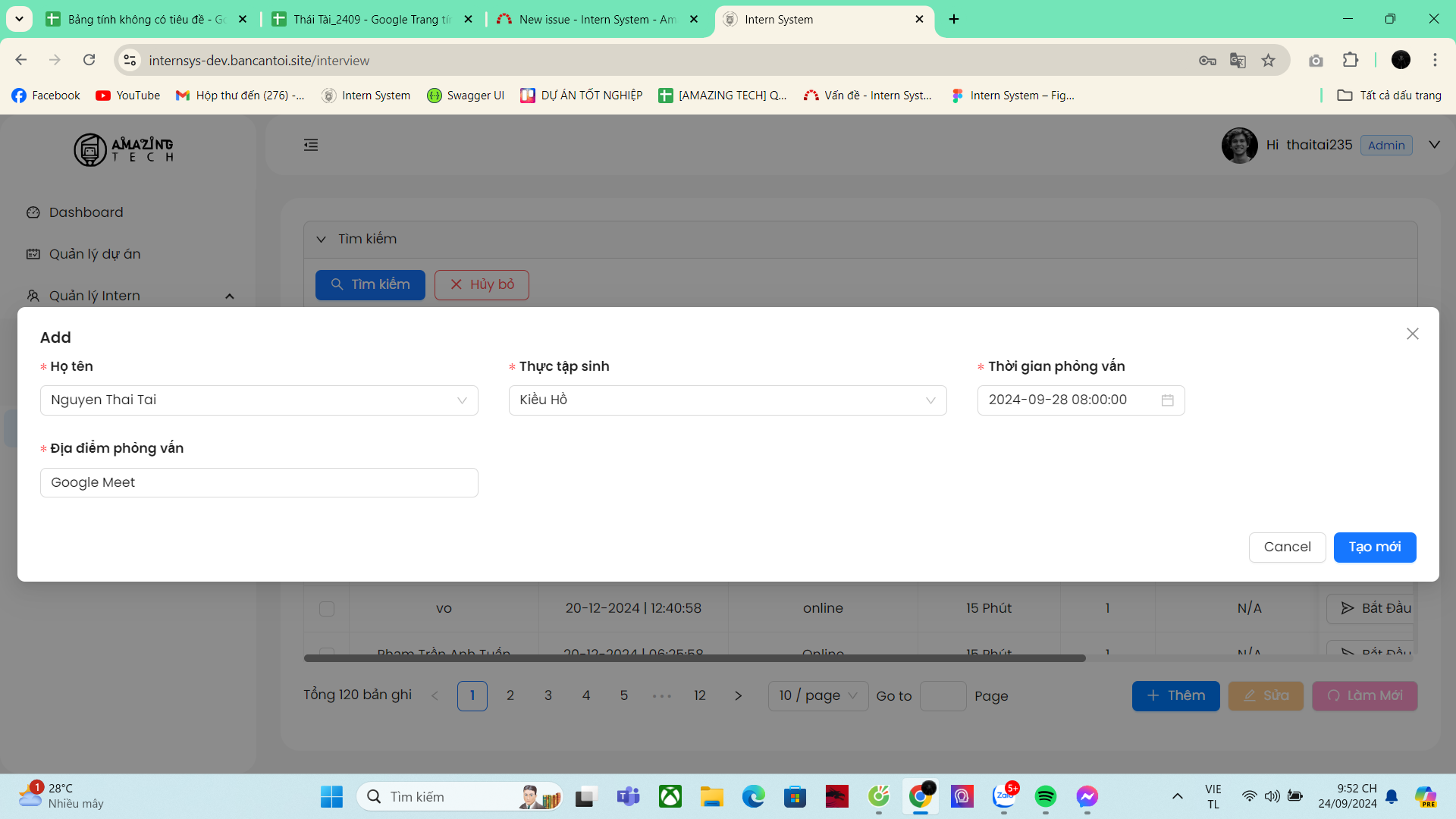 - Truy cập vào mục : https://internsys-dev.bancantoi.site/interview