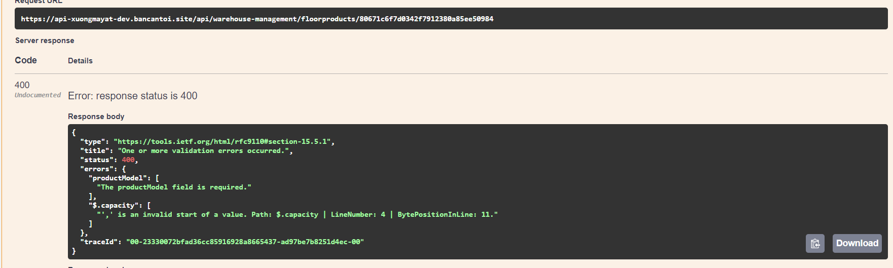 closedAPI_PUT_warehouse-management/floorproducts (Thiếu message error khi "capacity" null)