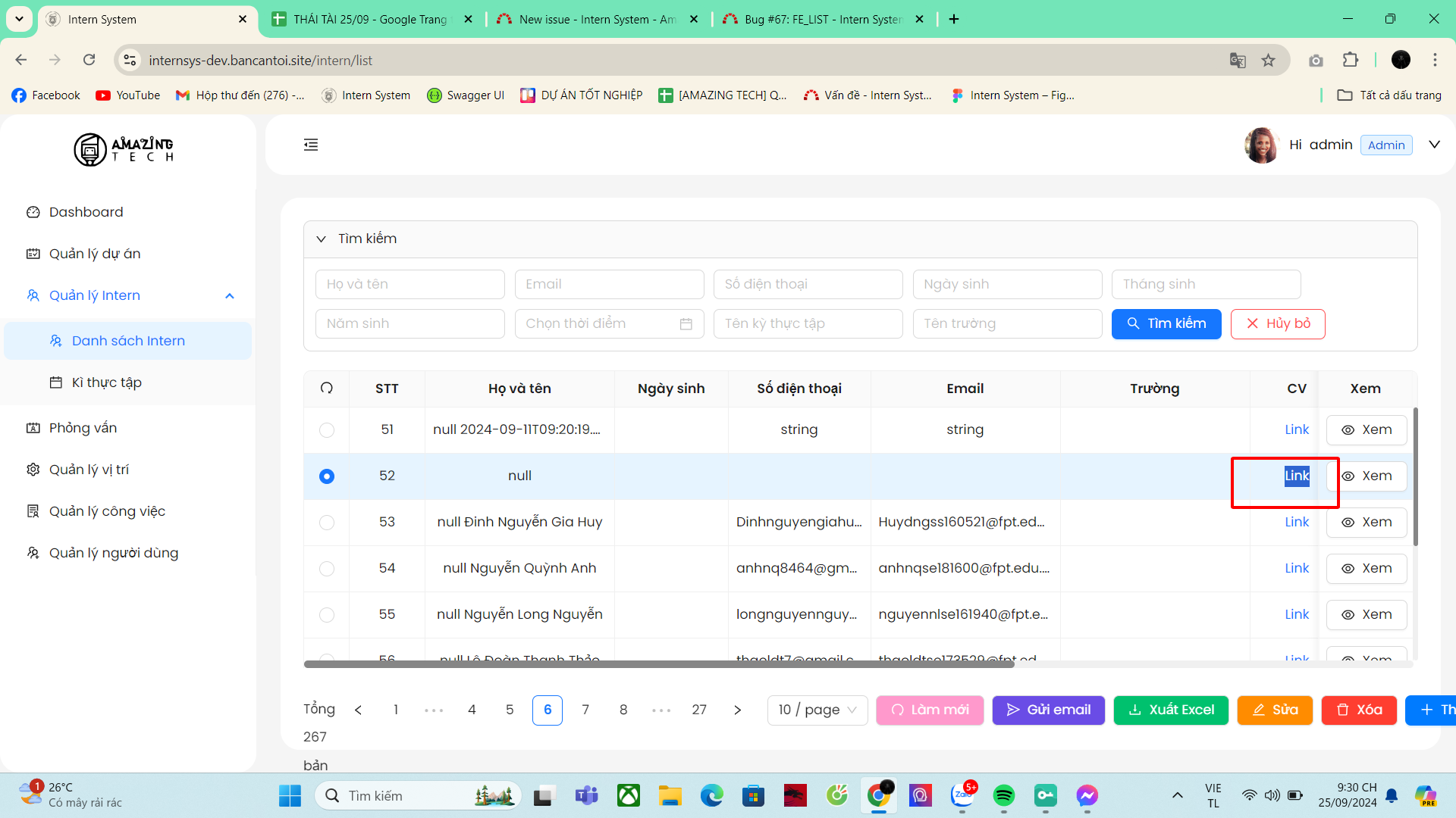 3. Vào trang https://internsys-dev.bancantoi.site/intern/list