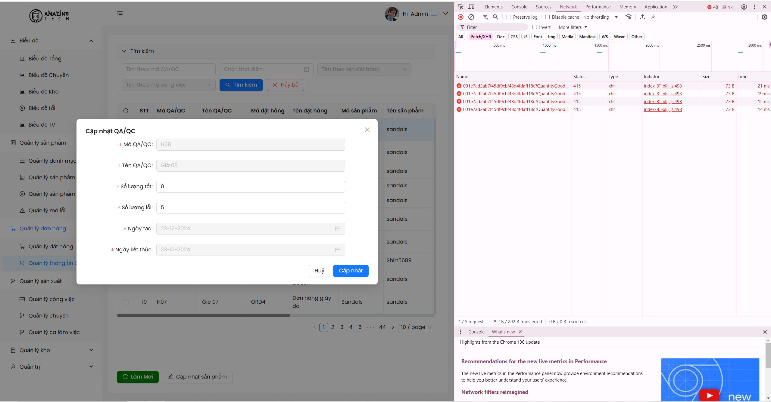 openWeb_Quản lý thông tin QA/QC_(Lỗi cập nhật sản phẩm)